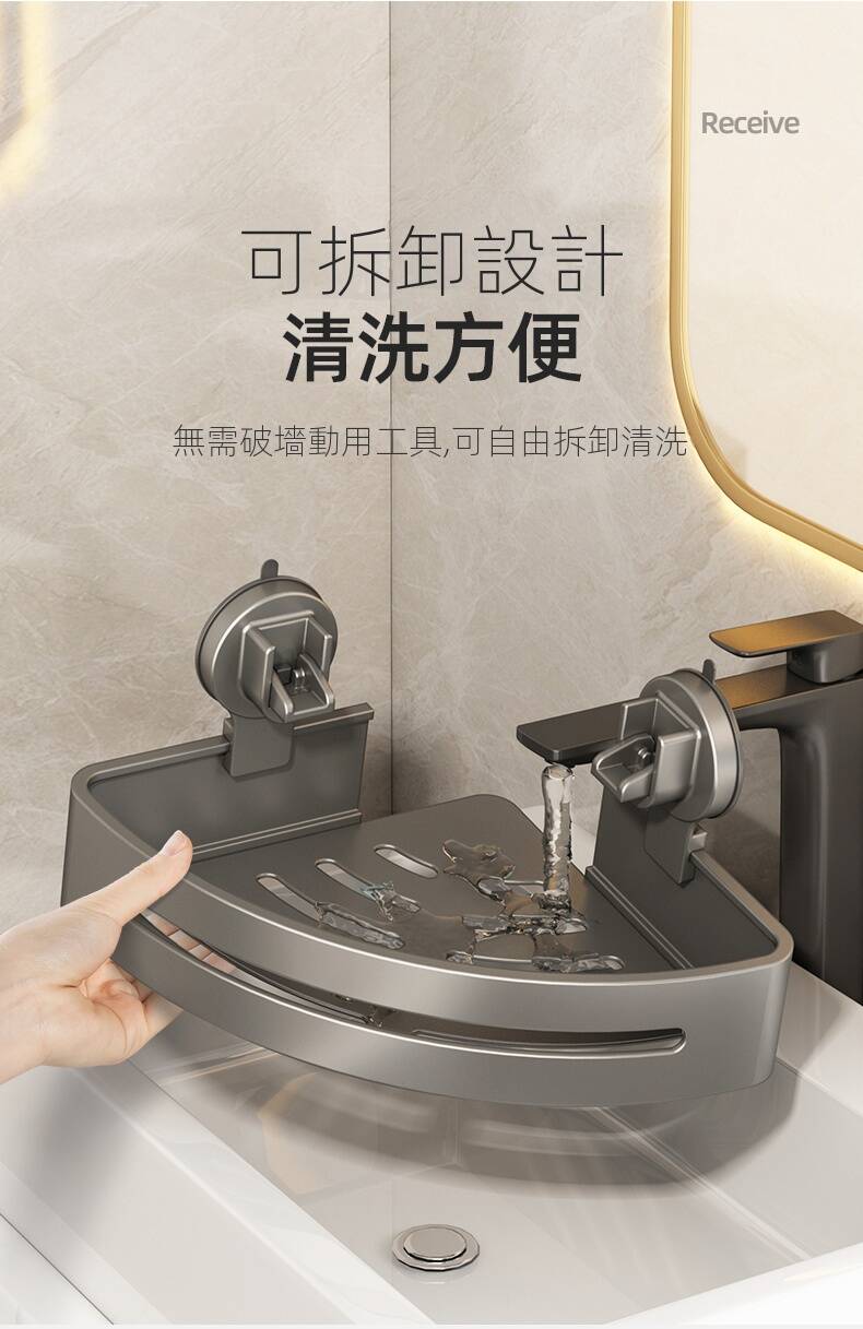 5分鐘前自帶吸盤,可隨時移動重復使用的置物架 免打孔廚房浴室衛生間三角置物架多用途壁掛收納架毛巾架 - 【超夯下殺】買一送二,共三入組 NT$998