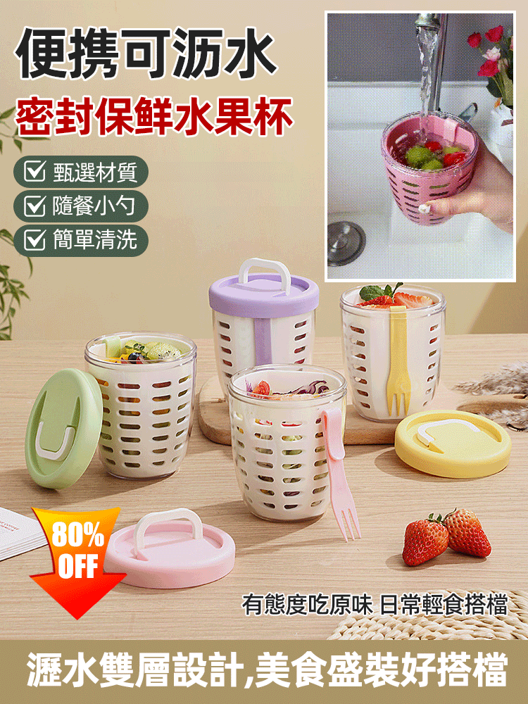 半小時前便攜可瀝水密封保鮮水果杯 - 買二送二1099